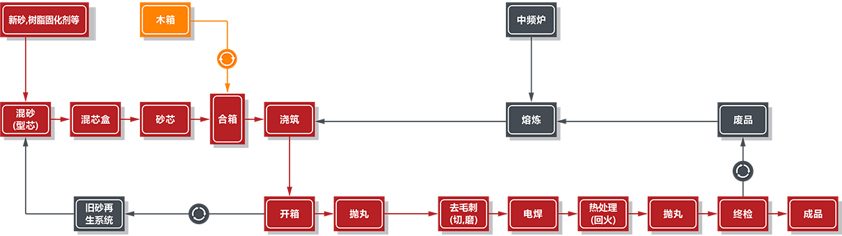 公司產(chǎn)品采用先進(jìn)的堿性酚醛樹脂砂生產(chǎn)工藝,配備有中頻爐6噸1臺、3噸2臺、1噸1臺,50噸和20噸天燃?xì)鉄崽幚頎t各一套、10噸電阻熱處理爐2臺。配備有現(xiàn)代化的檢測和材料試驗(yàn)設(shè)備:直讀式光譜分析儀、金相分析儀、機(jī)械性能試驗(yàn)、低溫沖擊試驗(yàn)、MT、PT、UT、RT等完善的檢測設(shè)備,由專職檢驗(yàn)人員進(jìn)行分析和檢測,以確??蛻魧﹁T件質(zhì)量的要求。