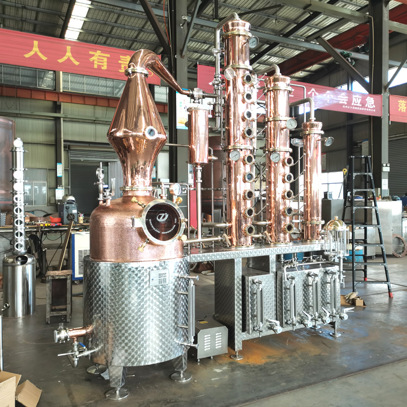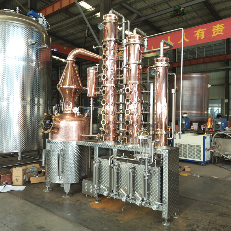 類蒸餾利用酒精的沸點(78.5℃)和水的沸點(100℃)不同,將凈化酒液并除去稀釋酒的成分,從而增加酒精濃度。我們提供提供個性化定制蒸餾設備,以滿足不同客戶的需求。